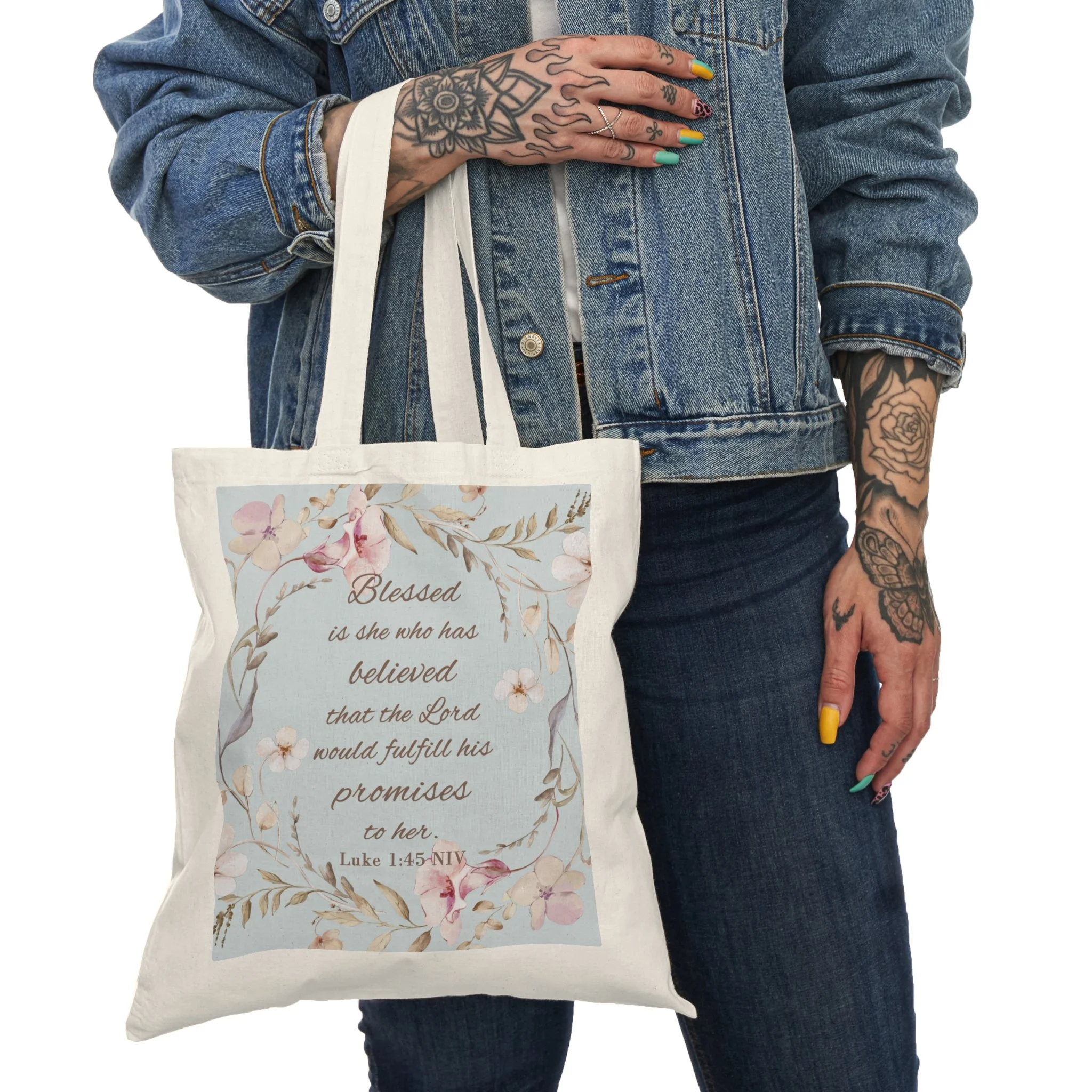 Scripture Tote Bag — Calming Flowers with Inspirational Verse