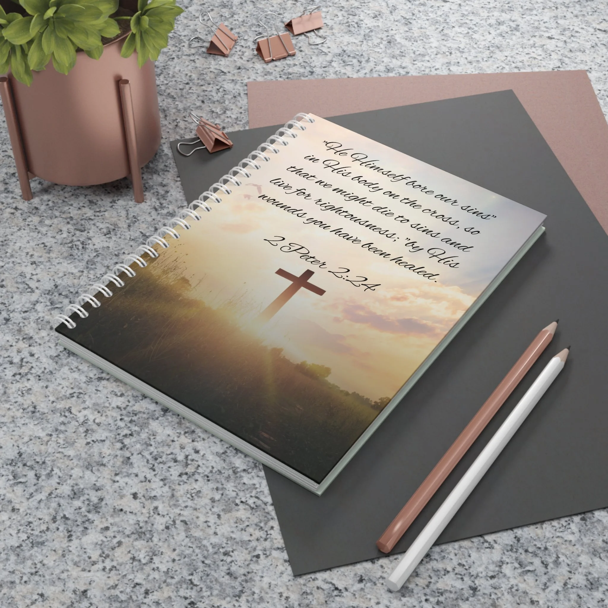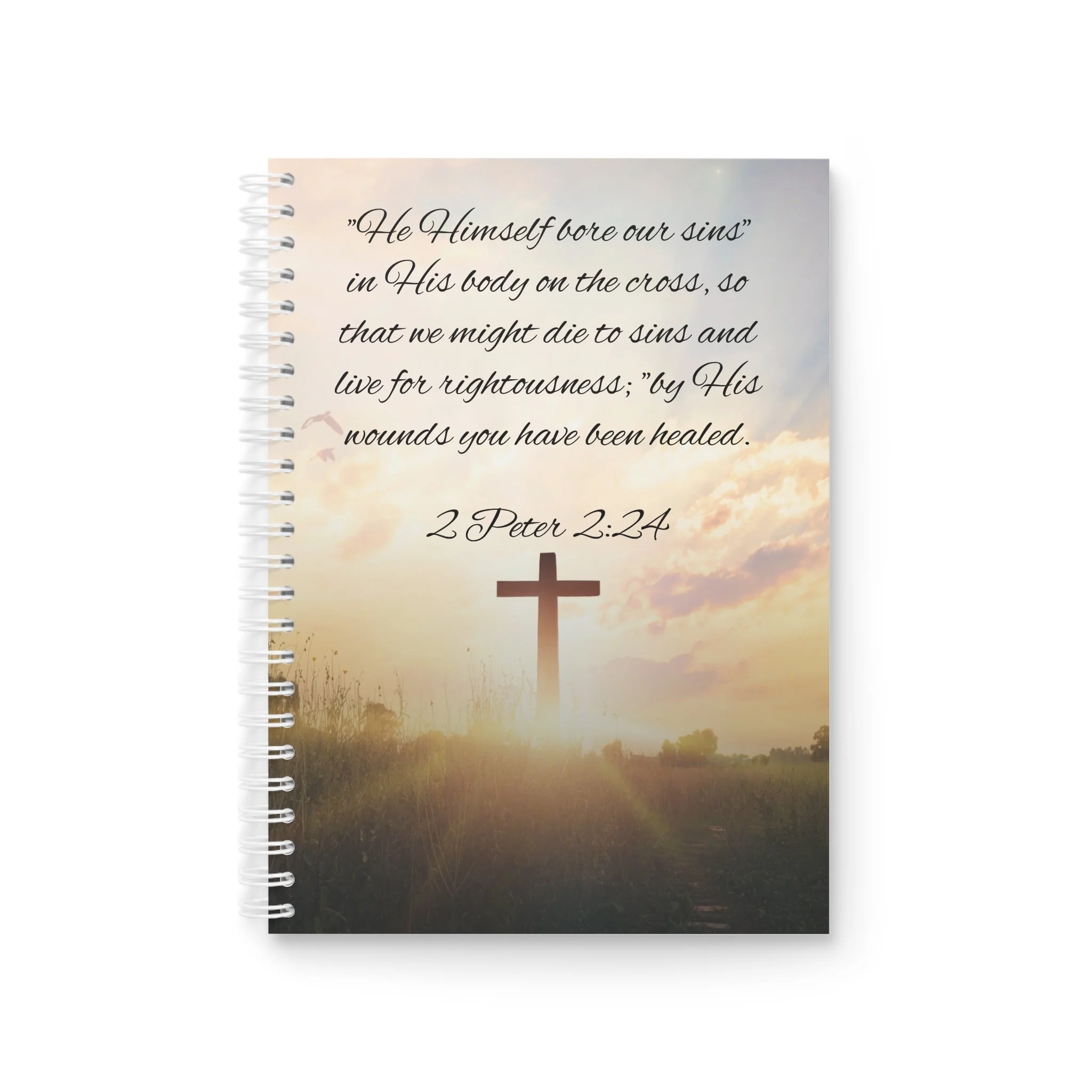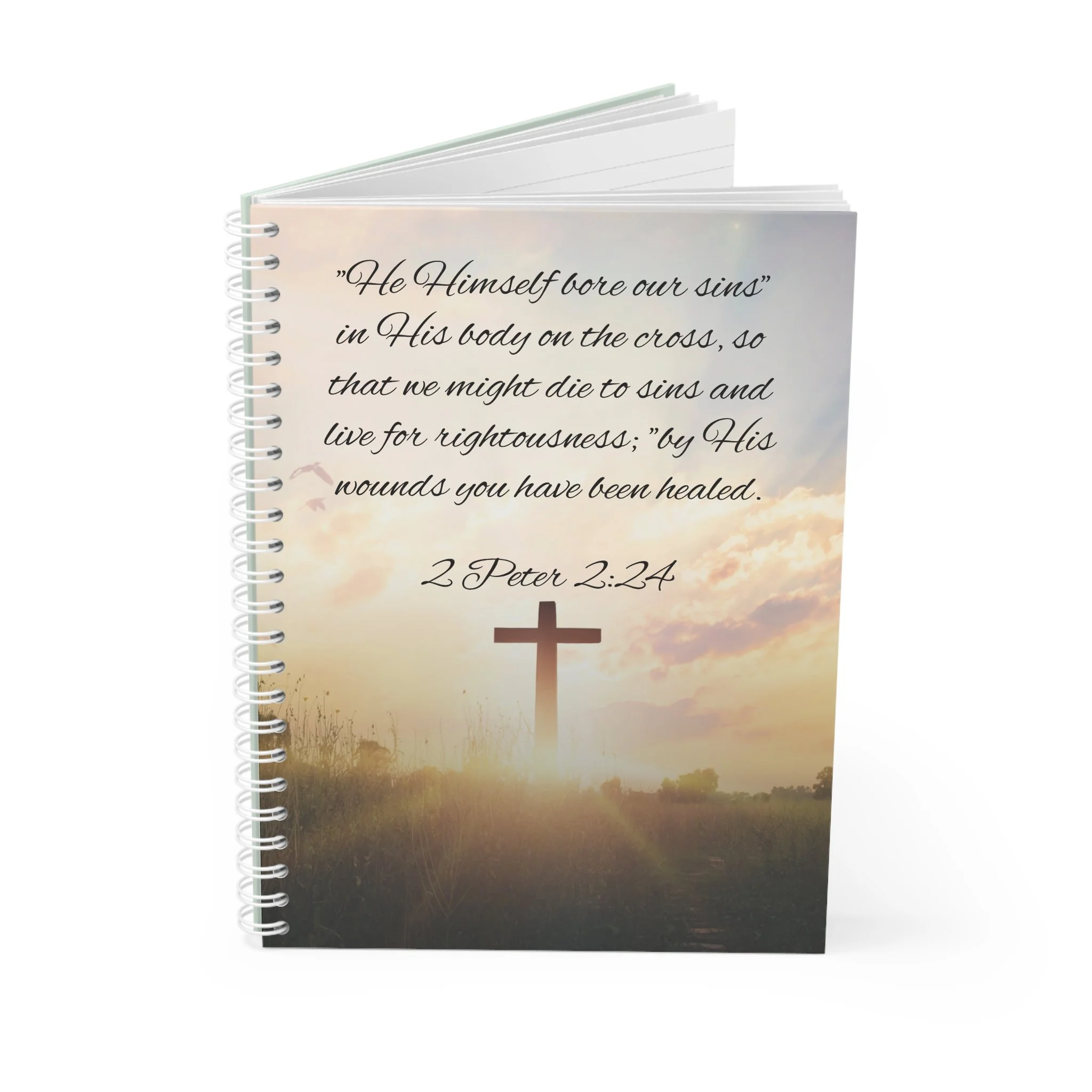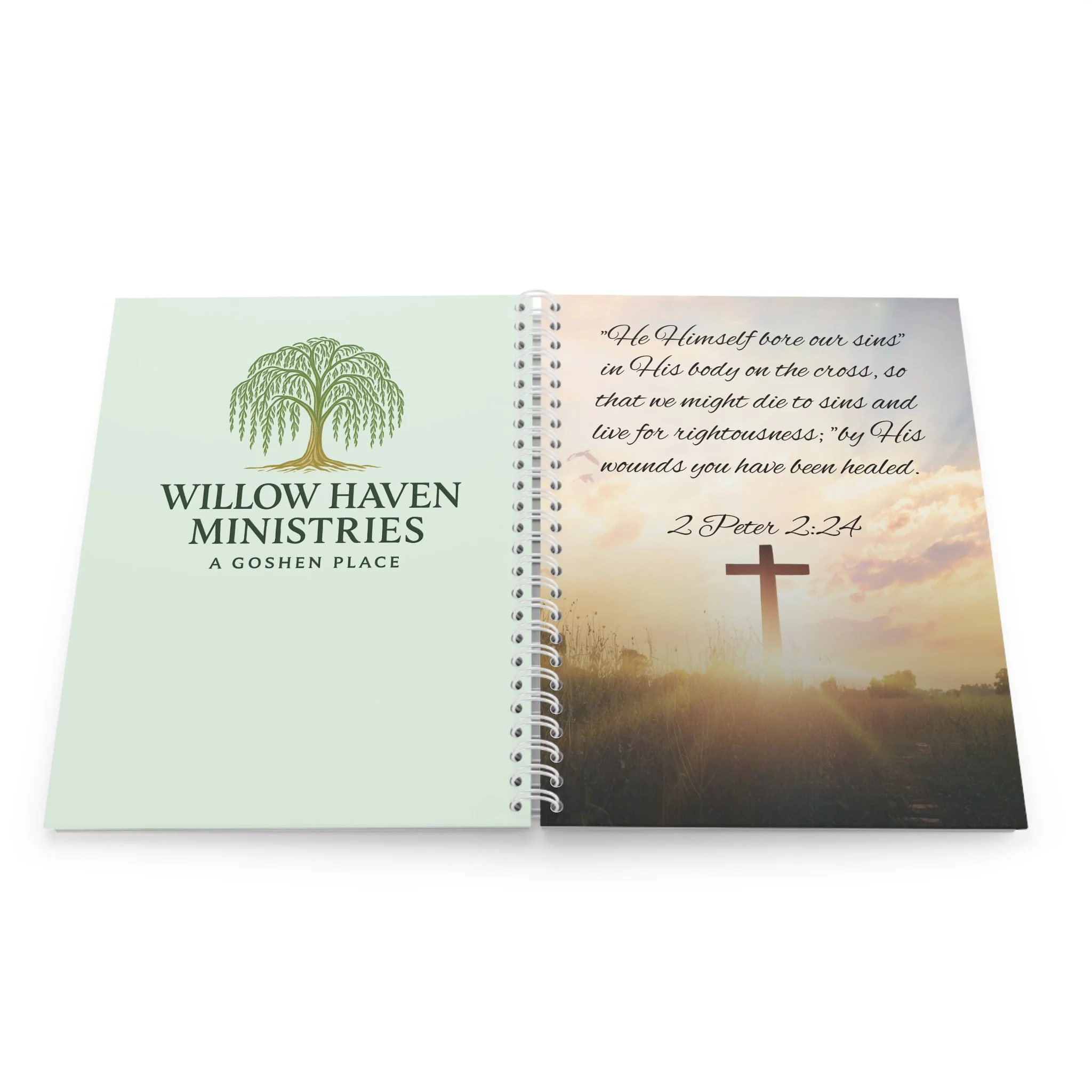This spiral notebook carries a calm, thoughtful energy—pages ready for prayer, sermon notes, or quiet reflections. A durable white metal spiral keeps pages secure yet easily removable when you want to share or archive a thought. The semi-gloss laminated cover showcases vivid, fade-resistant art on both front and back: a sunrise cross scene for moments of comfort and a soft-green WHM logo for gentle, everyday use. Inside, 128 ruled pages of smooth 90gsm paper invite steady handwriting without bleed-through. It sits comfortably in a bag or on a desk, waiting to hold study notes, meeting minutes, or personal journaling that matters.