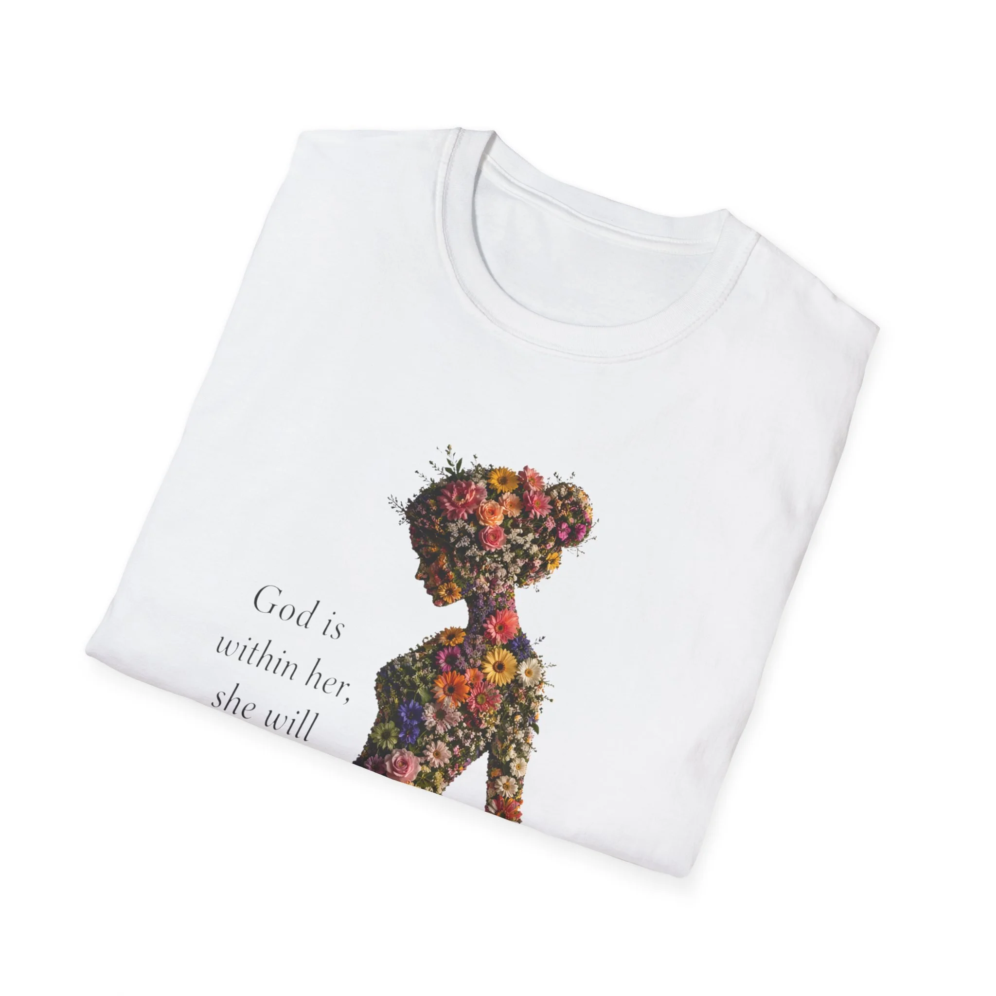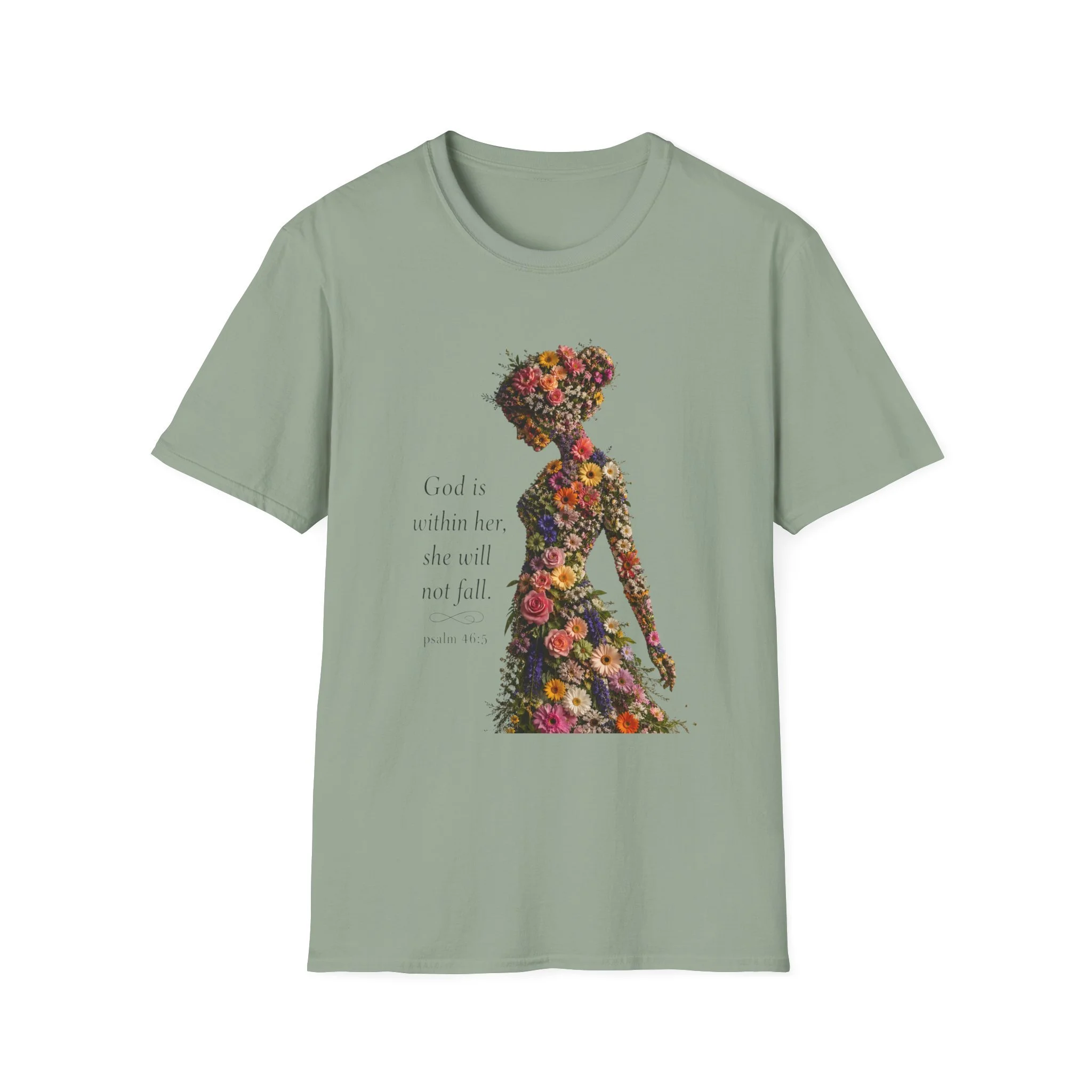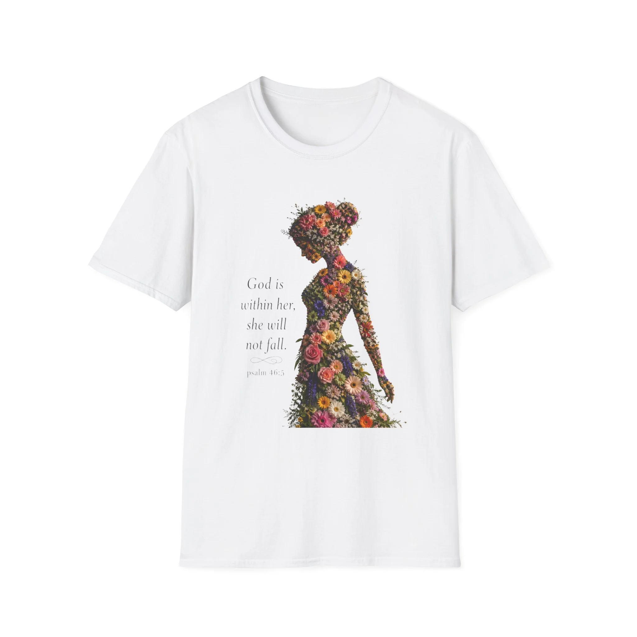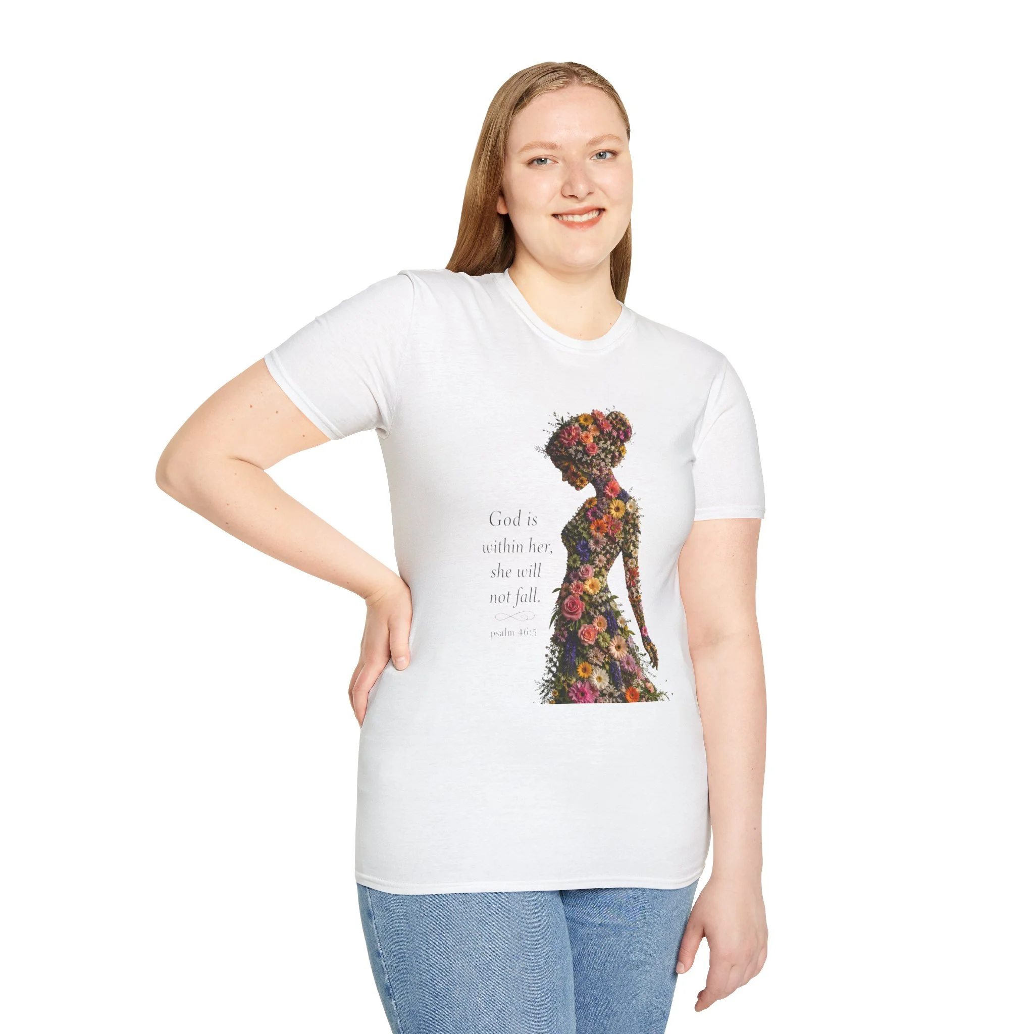 Floral Silhouette Christian T-Shirt — "God is within her, she will not fall"
