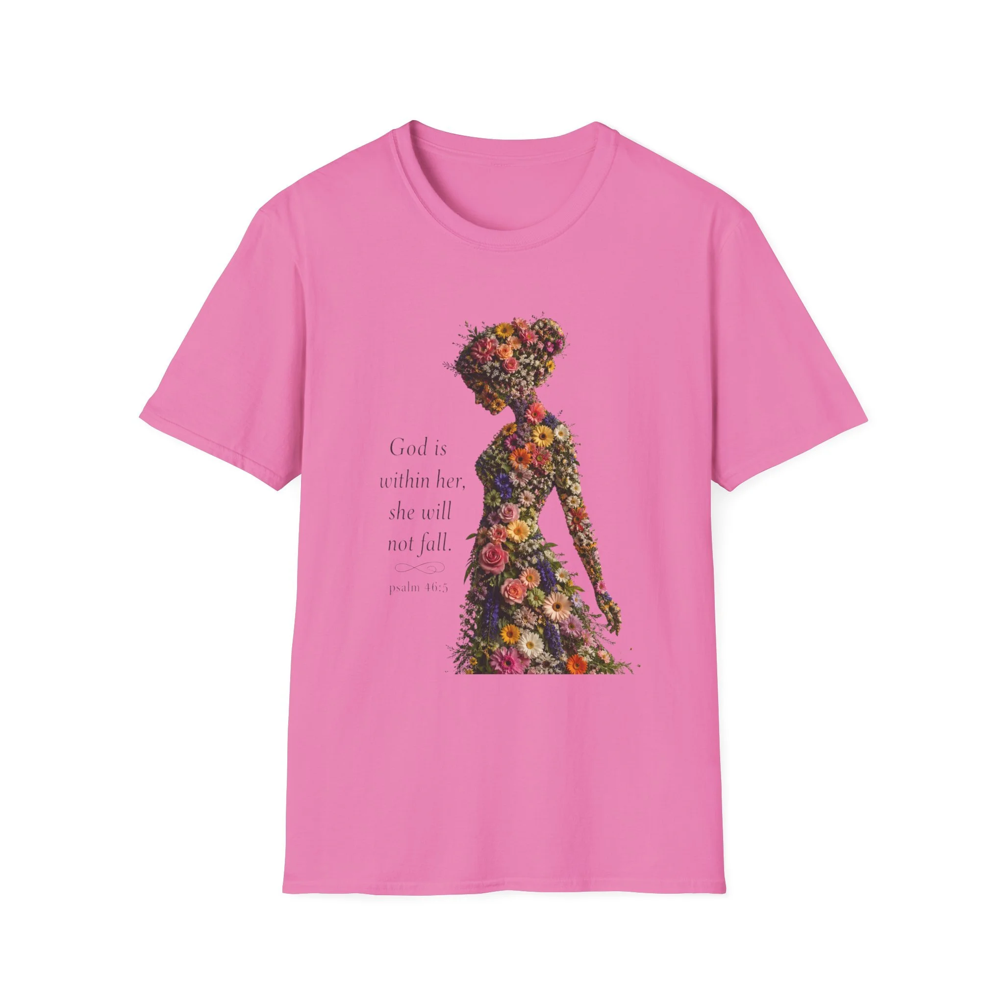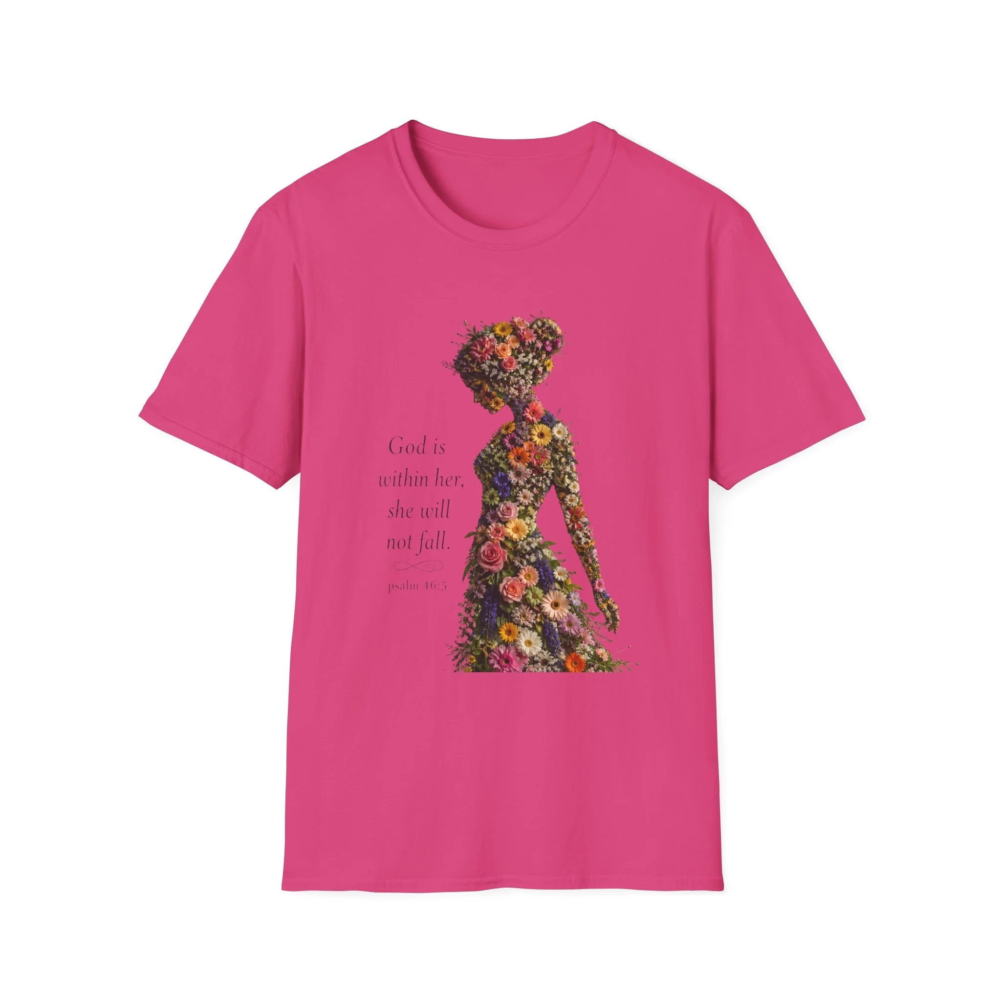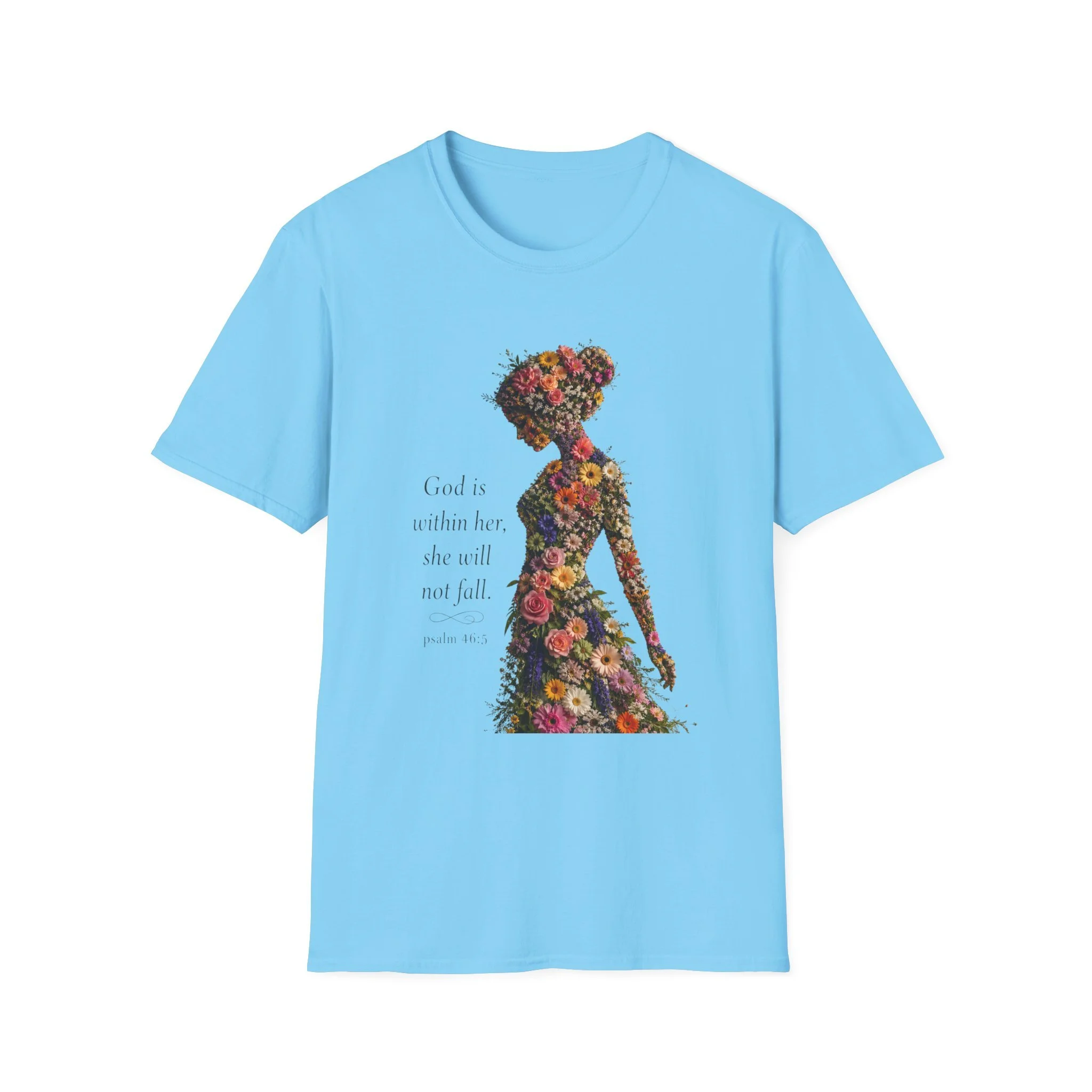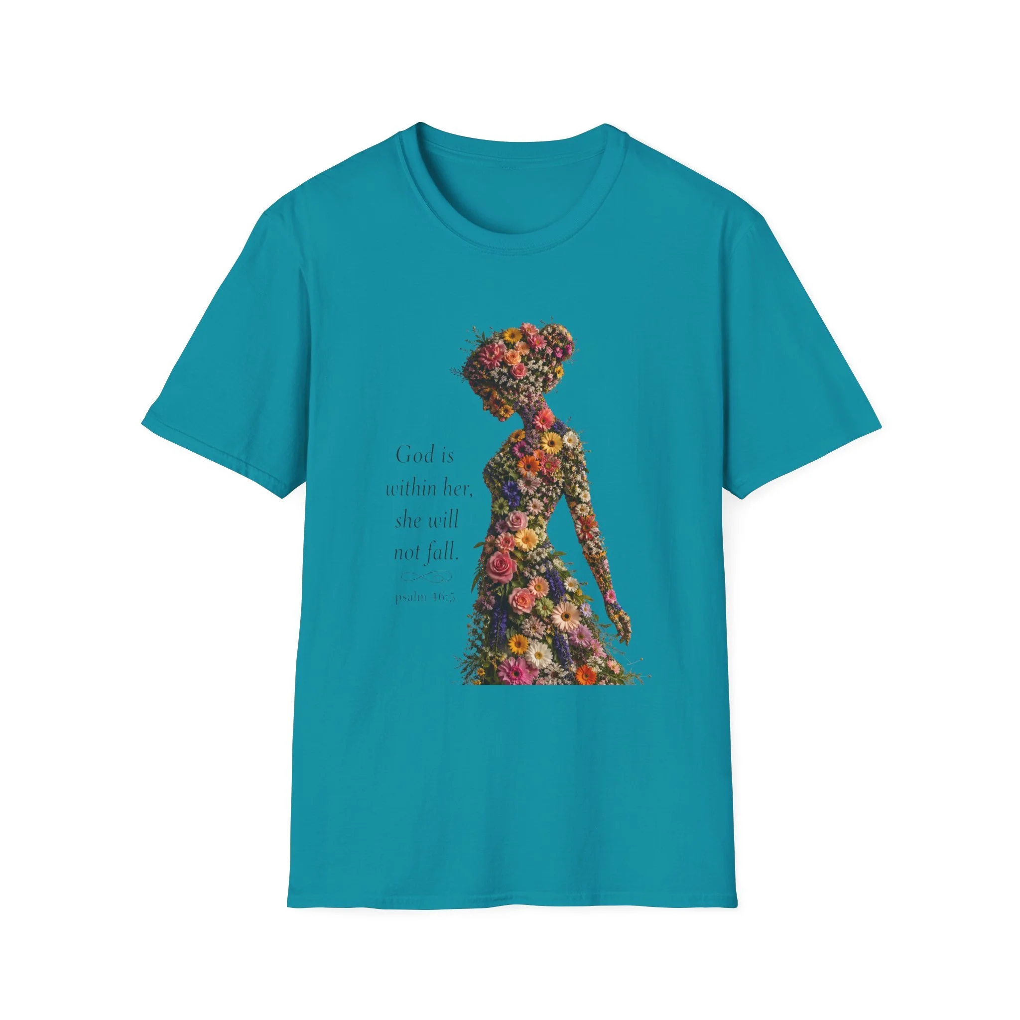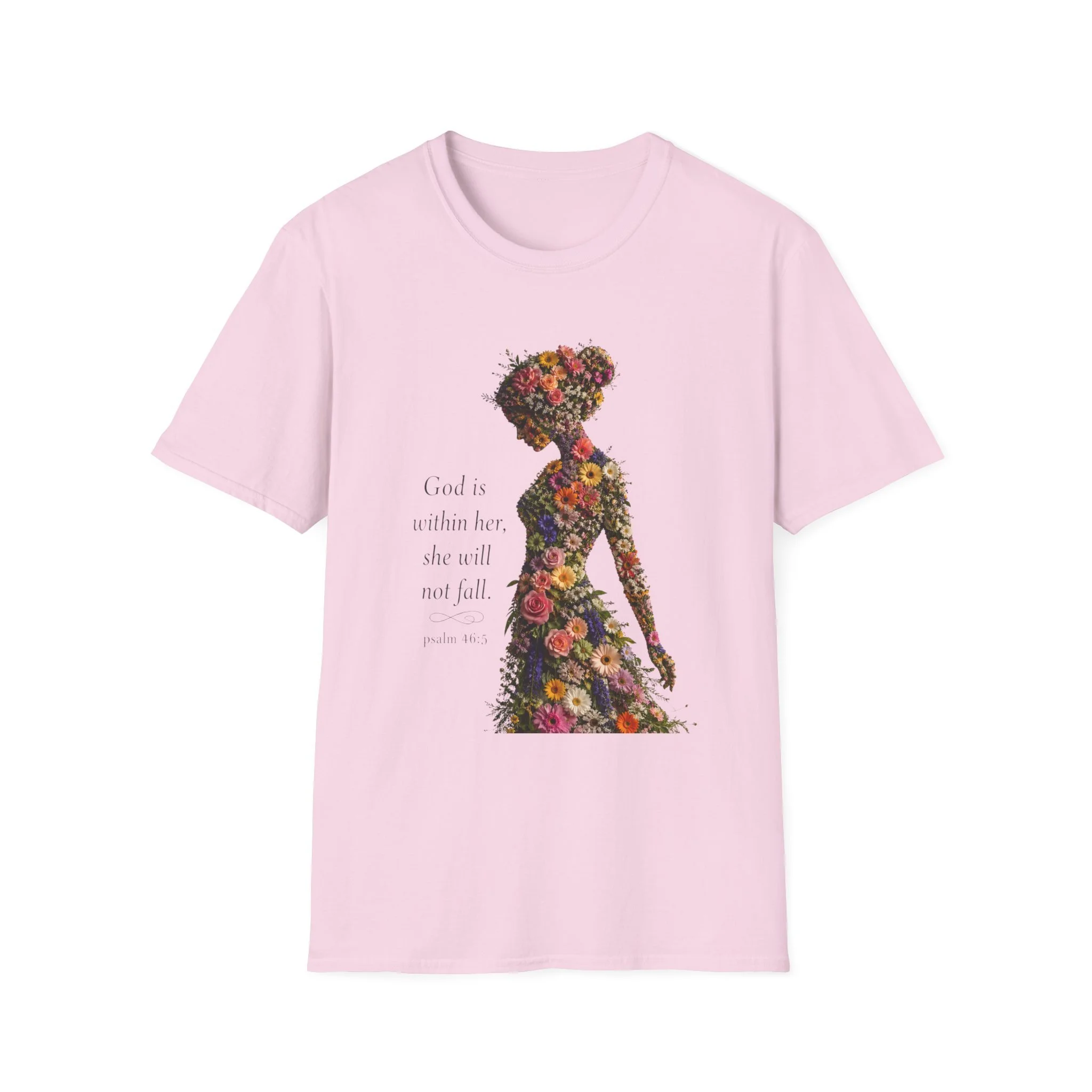 Floral Silhouette Christian T-Shirt — "God is within her, she will not fall"