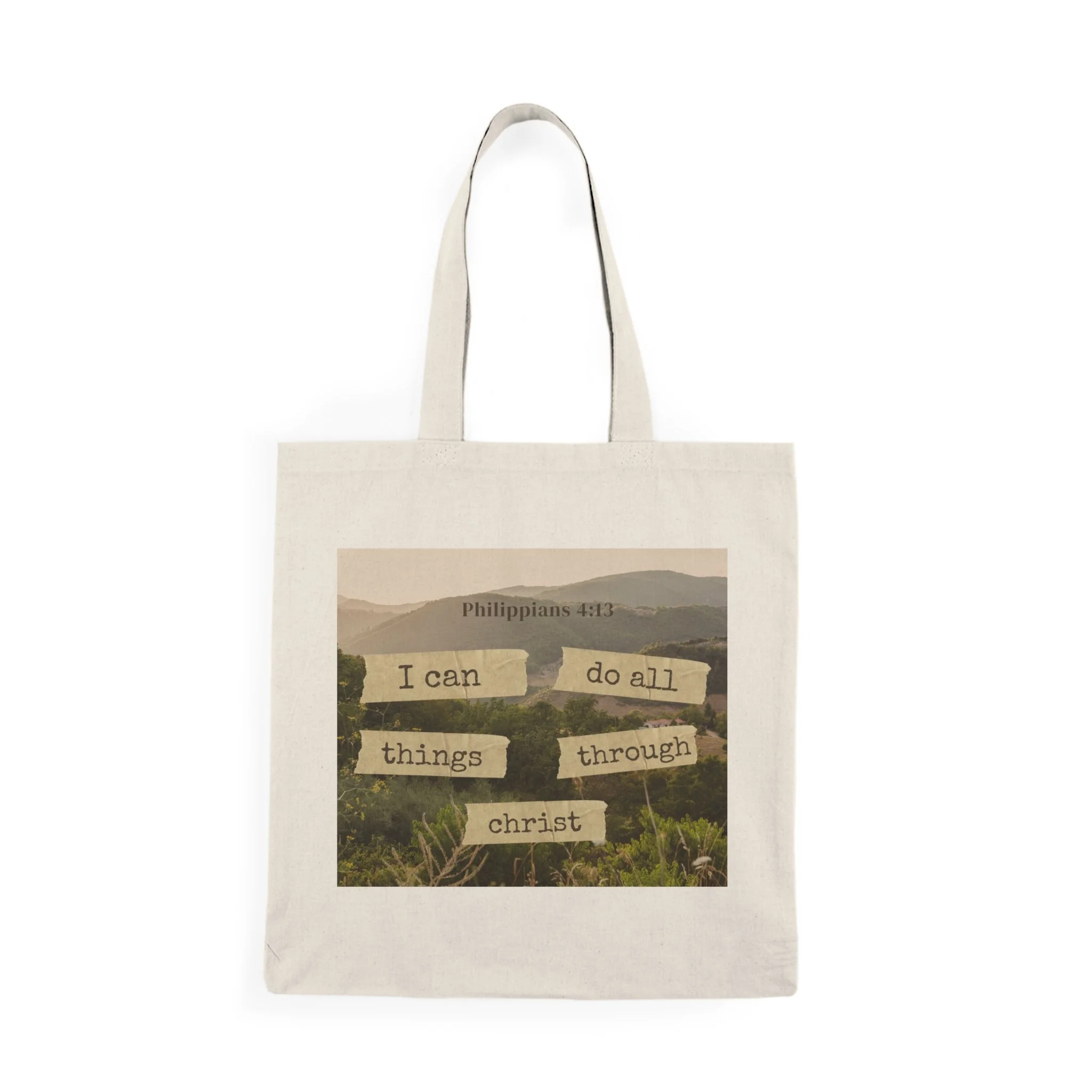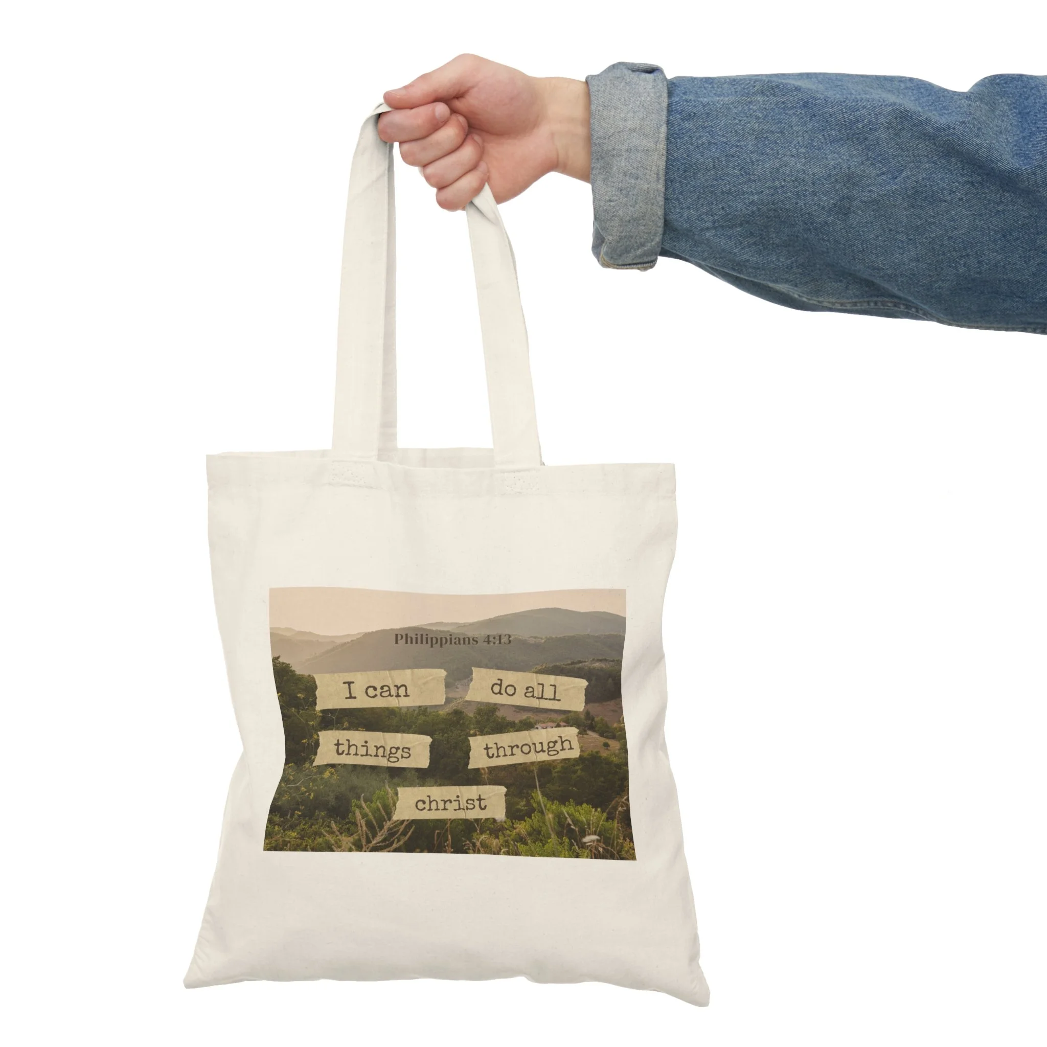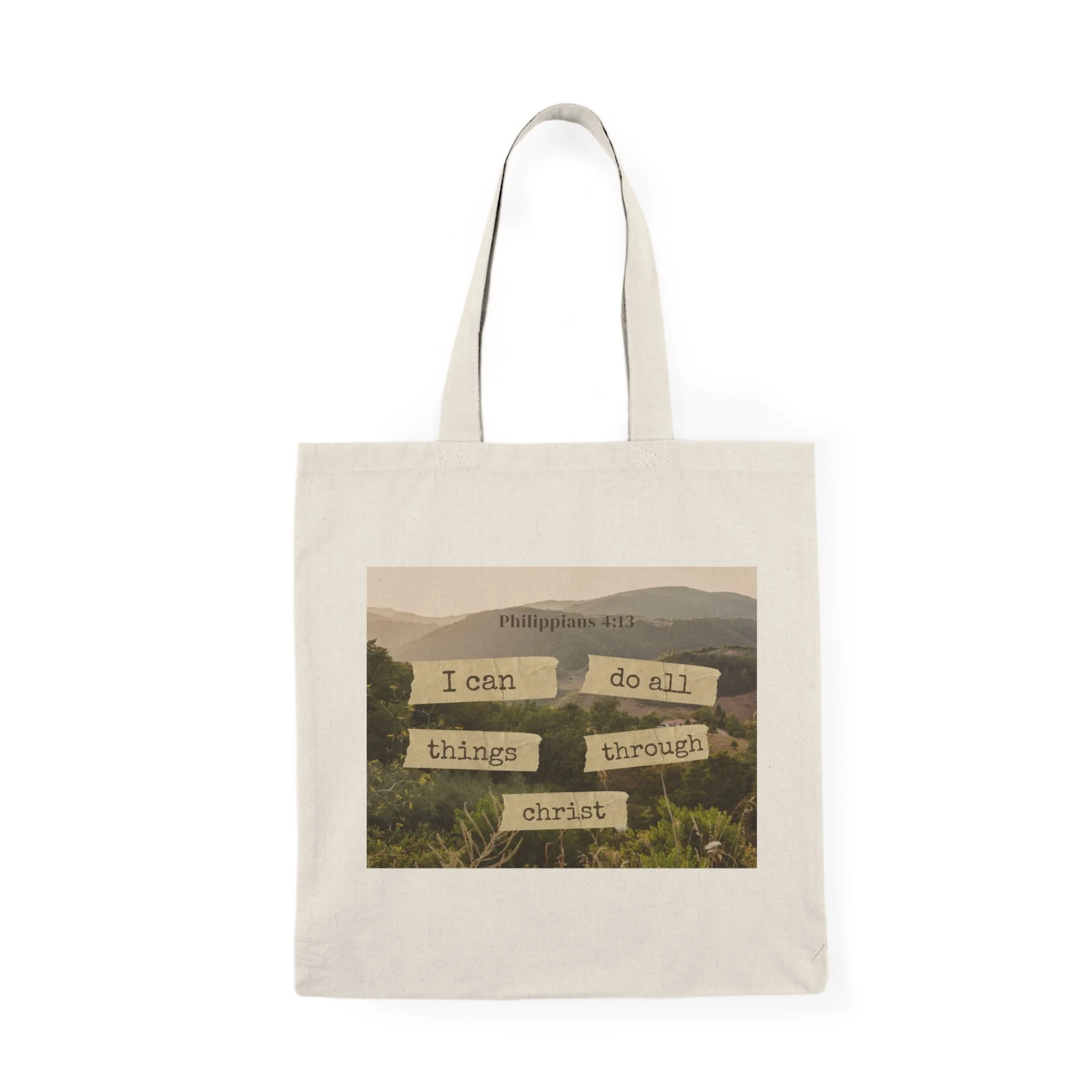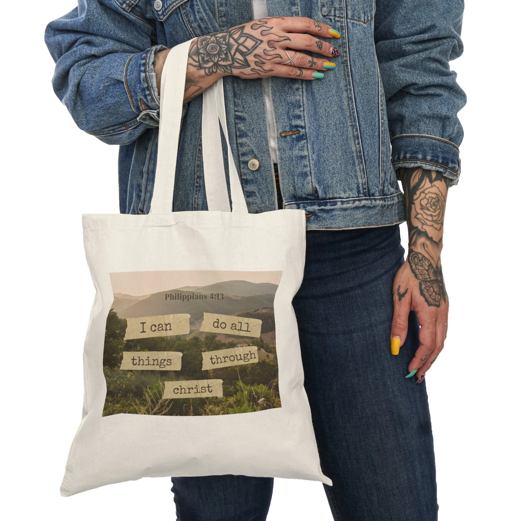 Inspirational Scripture Tote Bag — “I can do all things through Christ” Natural Canvas Tote